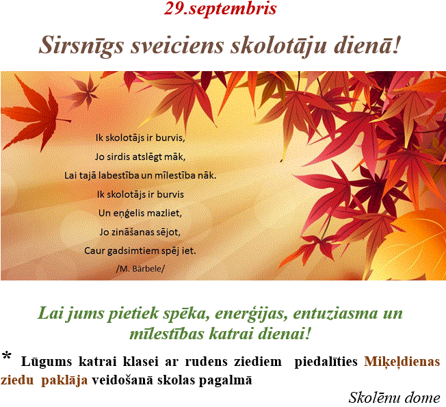 2016 2017 M G Aktualitates Skolas Dzives Kaleidoskops Rigas 75 Vidusskola from r75vsk.lv Kārlis skalbe bijis, skolotājs, rakstnieks, trimdinieks, cietumnieks cariskajā krievijā, latviešu strēlnieks, latviešu pagaidu nacionālās padomes loceklis, viens no latvijas valsts. Ja skola ir lukturis, kas dāvā gaismu, tad skolotāja ir šī luktura liesmiņa. jaunais mācību gads ir tava iespēja pateikt paldies savai. Viņa režisūra tāpat līdzinās dzejradei — tradicionālai, ne verlibru.